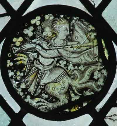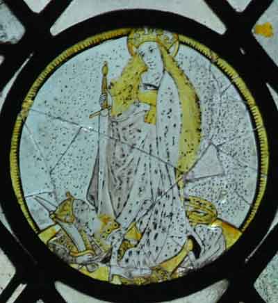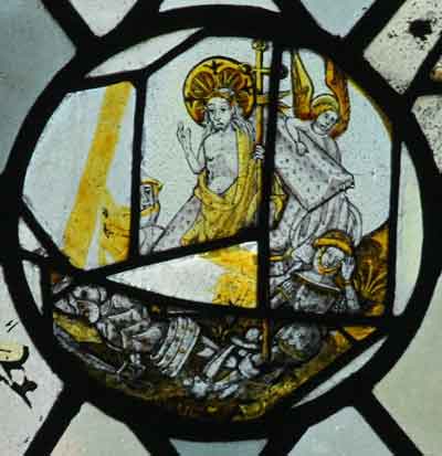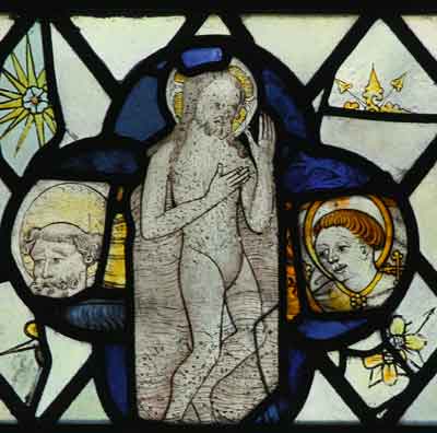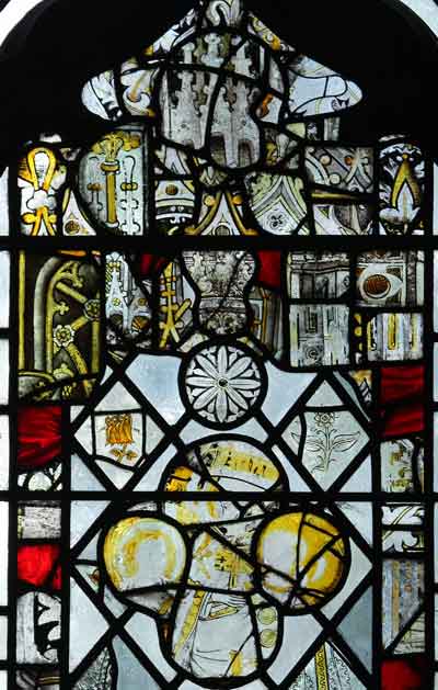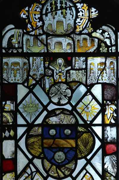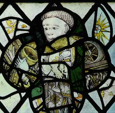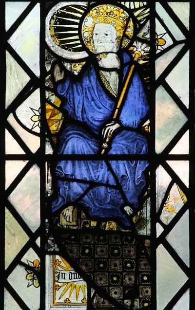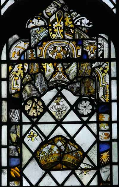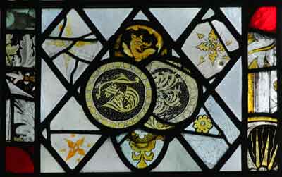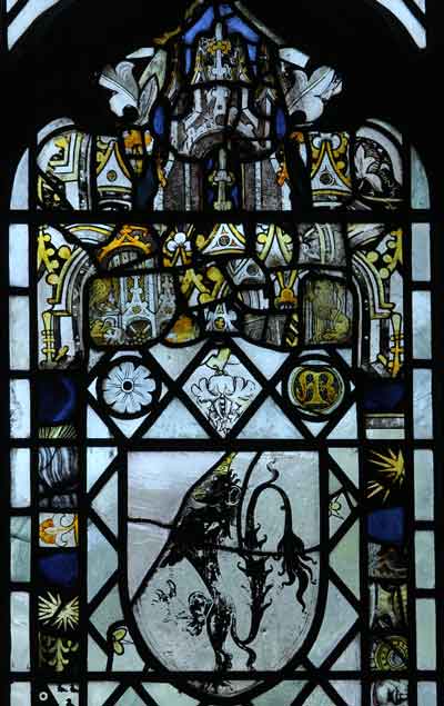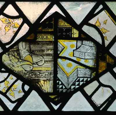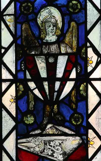 This window contains the most important collection of medieval glass in the Cathedral, including examples from the Norwich School of Glass Painting. They were collected by Dennis King of G King & son in 1963 and given by the Friends of Norwich Cathedral to commemorate Sir Thomas Erpingham (died 1428).