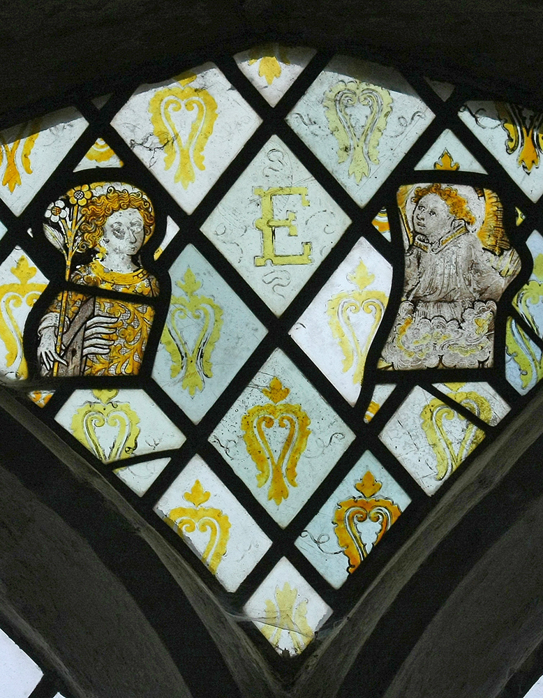 The window was probably set c1818 when the church was restored. Two small fragments of medieval angels are set in the tracery lights